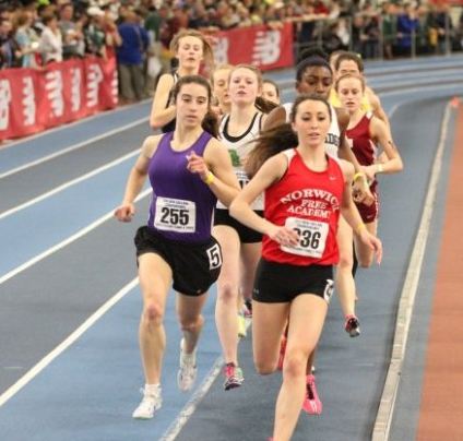 As a freshman, Berkson made it clear to track fans that she would be a formidable presence on the oval. She won the ‘11 State Indoor 1500 in 4:52.69, and went 3:02.12 to take the 1000; in both cases beating La Salle’s talented junior, Madison Meehan. She finished second in the 1000 meters that season at the New England meet (2:57.74). After finishing second in the state indoor 1500 and fifth in the 1000 as a sophomore, Berkson came out of the unseeded heat of the New England 1000 to win in a meet record 2:50.11.